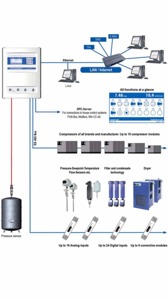 - Enhanced System Visibility: Provides a single HMI screen to view the status, pressure, and run hours of the entire compressor room, simplifying monitoring and diagnostics.