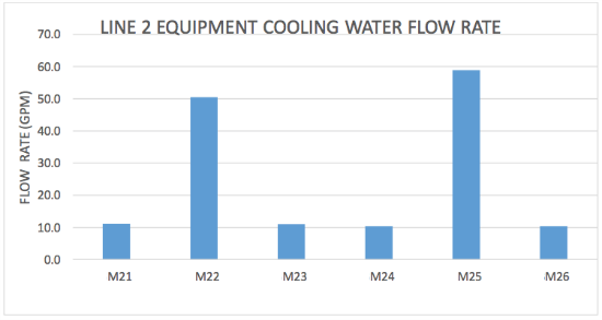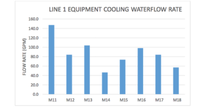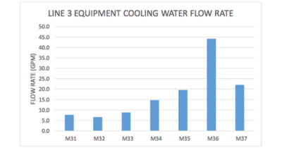 • The average cooling water flow varied drastically between manufacturing lines. (see figure #1).